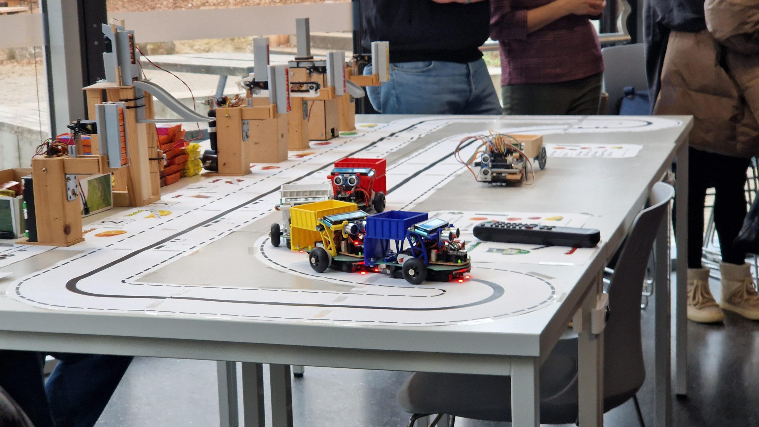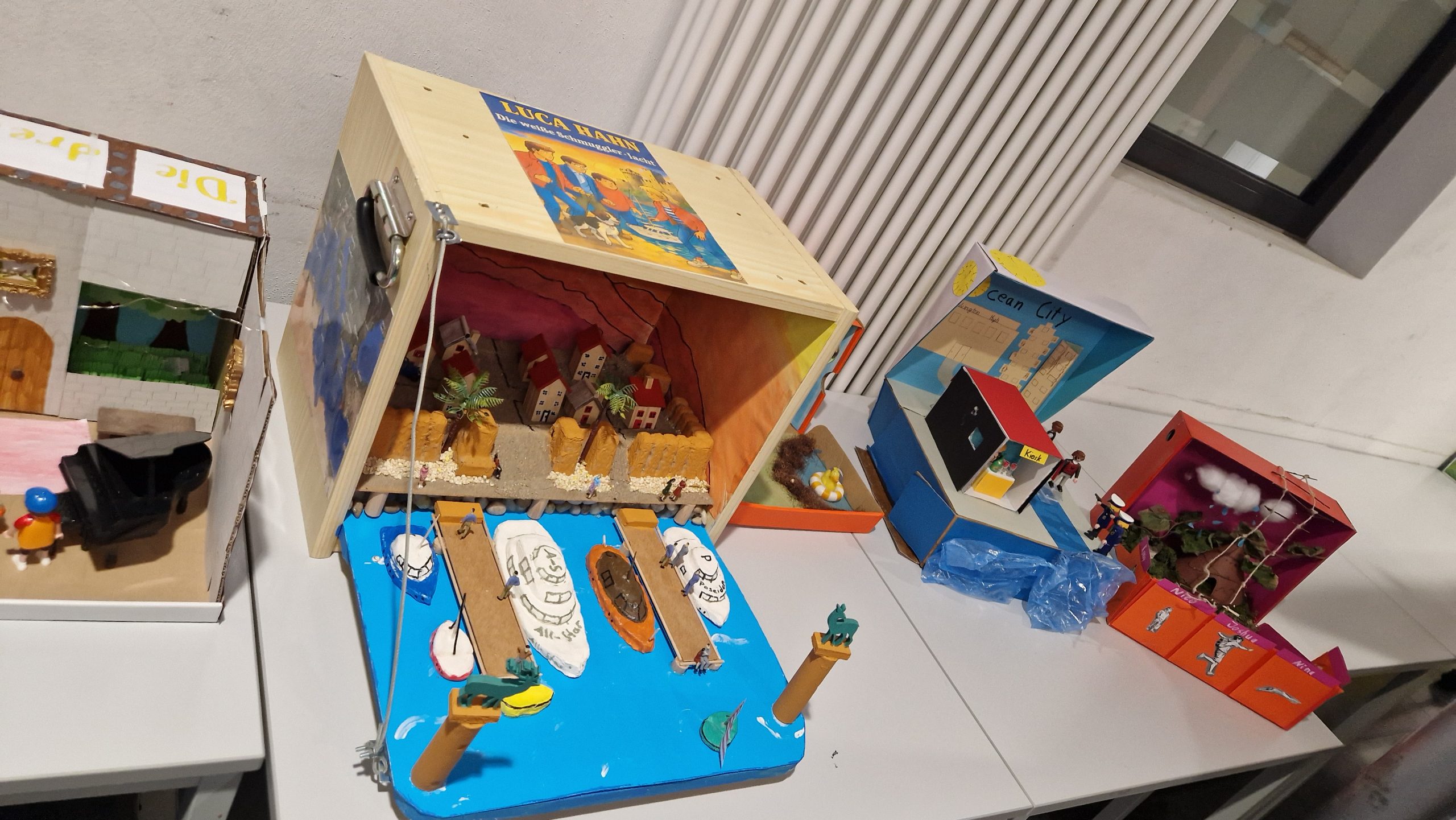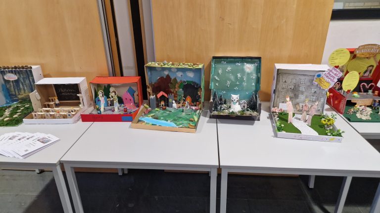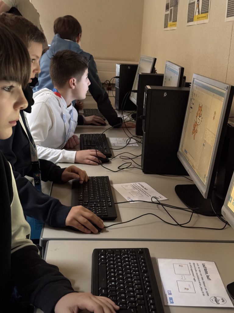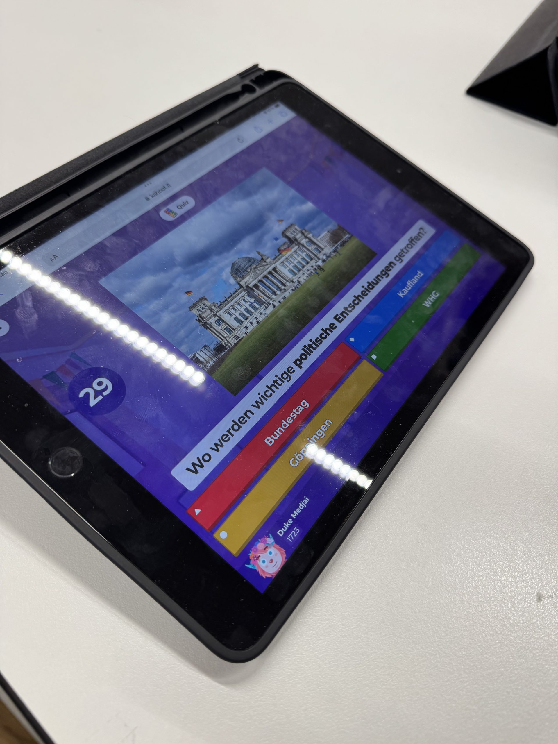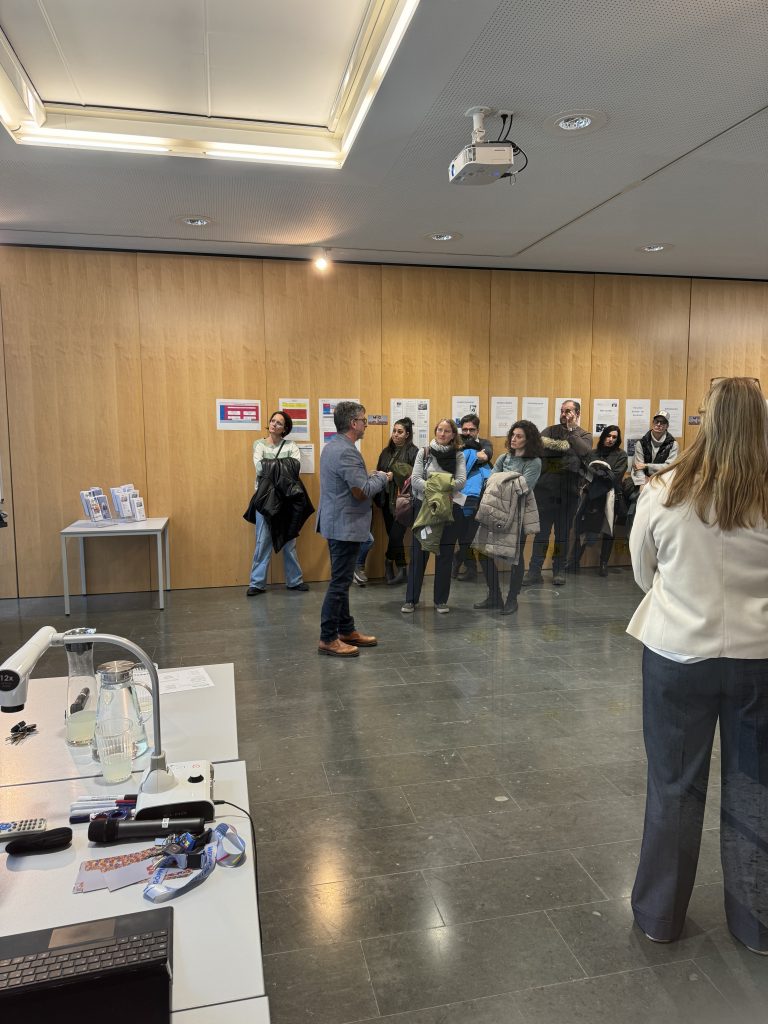 In Kleingruppen wurden unsere Gäste von Lehrkräften und engagierten Schülerinnen der zehnten und elften Klassen durch das Schulhaus begleitet. An jeder Station gab es etwas zu entdecken: In der Turnhalle wartete ein sportlicher Mini-Parcours mit Urkunde, an den Sprachenstationen präsentierten sich Englisch, Französisch, Latein und Spanisch auf kreative Weise. Die Naturwissenschaften luden ein zum Mikroskopieren, Staunen über chemische Reaktionen und Beobachten kleiner Roboterfahrzeuge. Für Begeisterung sorgte wie immer der Bonbon-Roboter von Herrn Schuhmeier in der Informatik – direkt neben dem Politik-Quiz des Gemeinschaftskunde-Leistungskurses. Wer sich für das Ganztagesangebot, Förderangebote, AGs und Profile interessierte, konnte sich an der Infostation der Schulleitung umfassend informieren. Auch die Schulsozialarbeit war mit einem eigenen Stand vertreten. Ein gemütlicher Abschluss wartete in der Mensa, wo die Jahrgangsstufe 2 Kaffee und Kuchen für die Abikasse verkaufte. Zudem stellten sich das Schulmagazin Guckloch sowie das Projekt Patenkind vor.