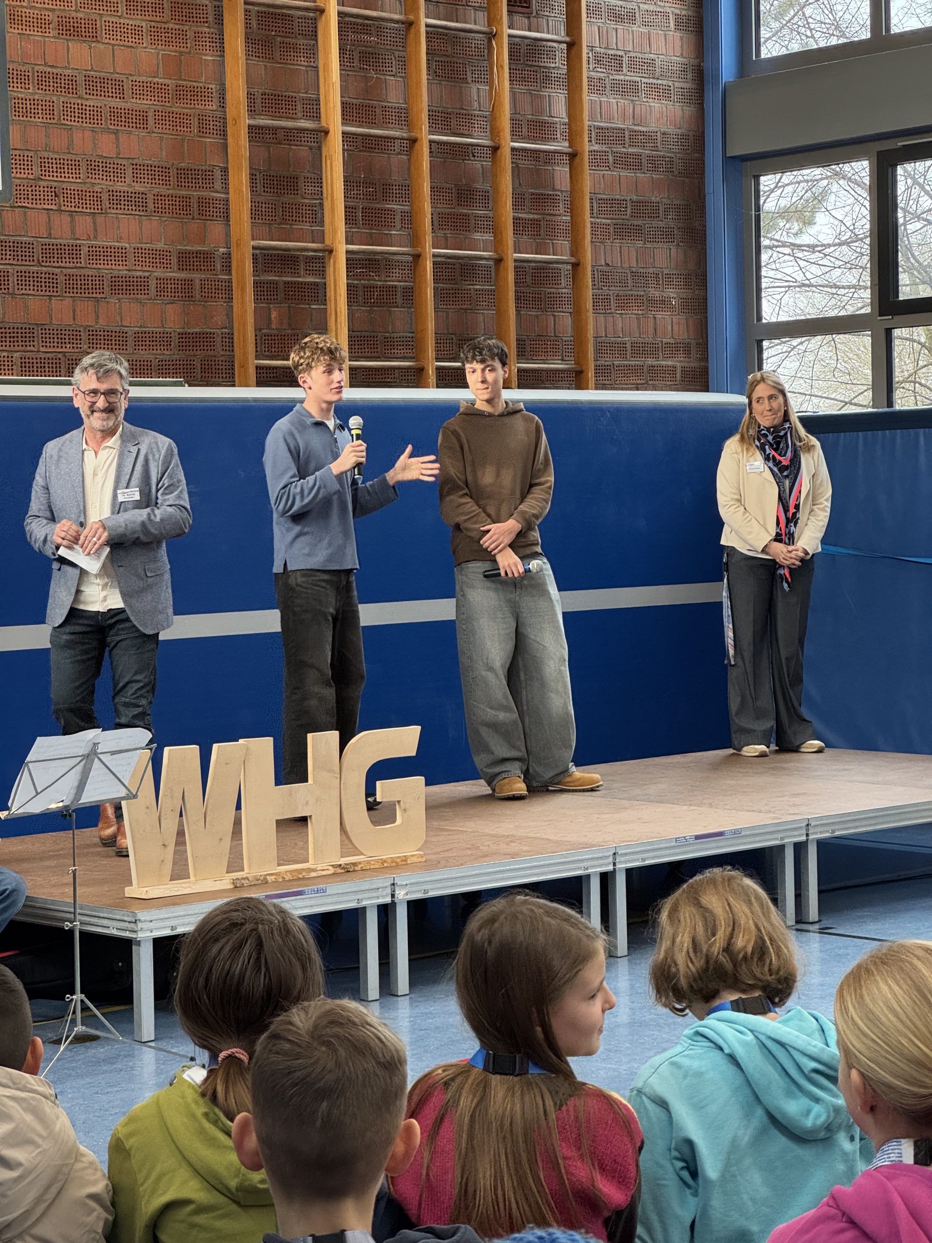 Am Dienstag, den 3. Februar 2026, öffnete das WHG wieder seine Türen für interessierte Viertklässlerinnen und Viertklässler und deren Familien. Begleitet von der Big Band unter der Leitung von Herrn Holder und begrüßt von der Schulleitung Claudius Bührle und Katharina Kraner, startete ein abwechslungsreicher Nachmittag mit zahlreichen Mitmachangeboten und spannenden Einblicken ins Schulleben. Die beiden Schülersprecher Maxi und Lars ließen es sich ebenfalls nicht nehmen, den Interessierten ihre ganz persönlichen WHG-Geschichten zu erzählen.