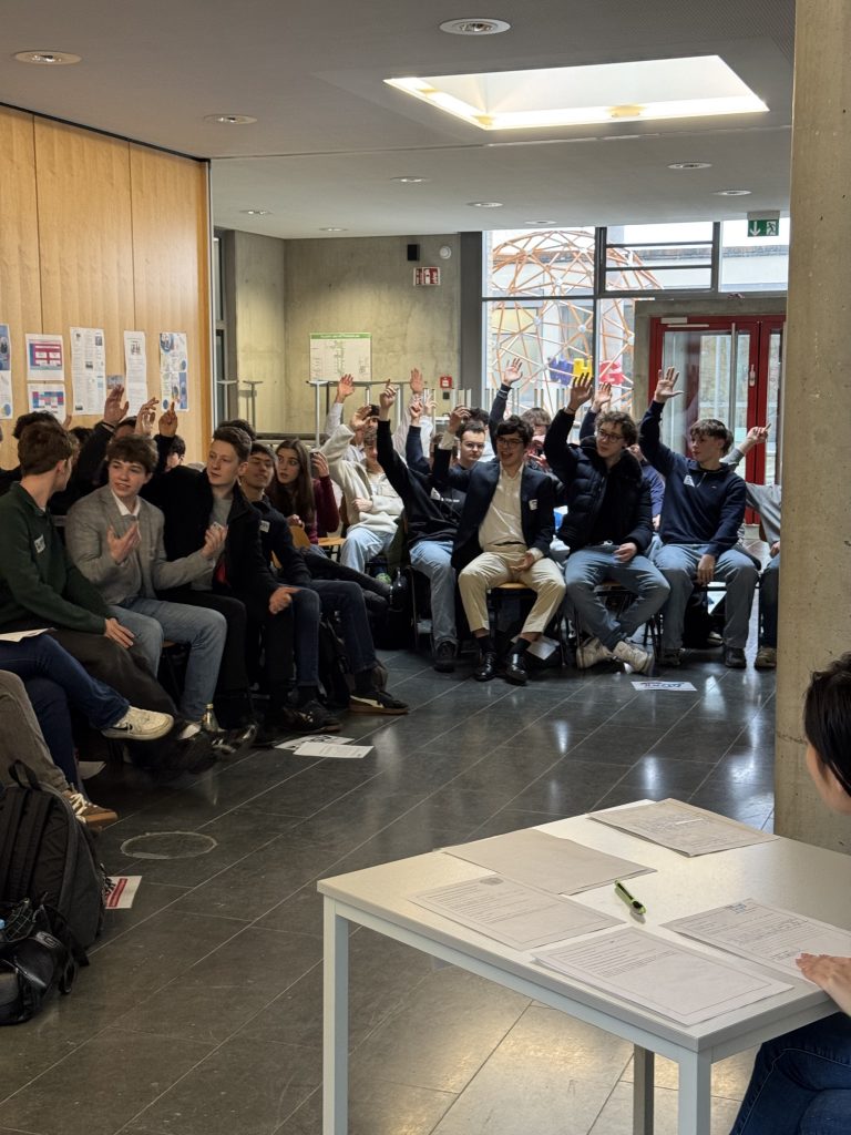 Am Donnerstag, den 12.02.2026, verwandelte sich die J1 für einen Schultag in einen kleinen Deutschen Bundestag: Beim großen Bundestagsplanspiel übernahmen alle Schülerinnen und Schüler die Rolle von Abgeordneten und durchliefen innerhalb von sechseinhalb Stunden einen vollständigen Gesetzgebungsprozess – von der Fraktionssitzung bis zur Schlussabstimmung.