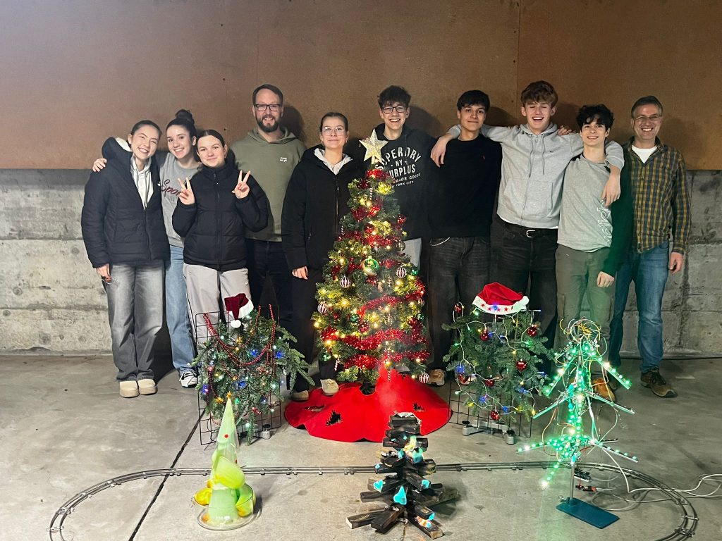 Als zusätzliches Special fuhr eine kleine Modell-Eisenbahn rund um die Bäume – bestückt mit Wunderkerzen für den festlichen Touch. Ein großes Kompliment an das Team: Mit viel Neugier, Kreativität und Teamgeist wurde hier ein naturwissenschaftliches Projekt mit Herz und Köpfchen auf die Beine gestellt. Das hat nicht nur beeindruckt, sondern auch richtig Spaß gemacht! Wir bedanken uns vor allem bei unseren Lehrerinnen und Lehrern Frau Fantauzzi, Herrn Biermann und Herrn Schuhmeier.