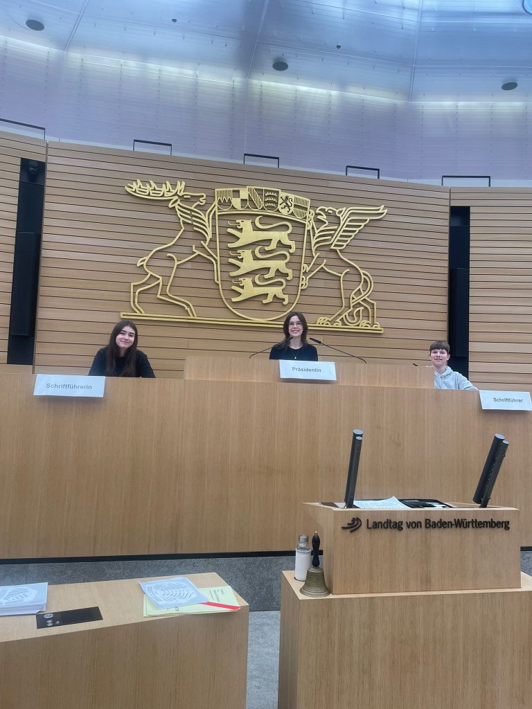 Am 29. Januar 2026 besuchten die zehnten Klassen des WHG gemeinsam mit Frau Härtel, Frau Katz und Herrn Dis den baden-württembergischen Landtag in Stuttgart. Im Rahmen des Besuchsprogramms konnten die Schüler:innen nicht nur den Plenarsaal von innen sehen, sondern selbst in die Rolle von Landtagsabgeordneten schlüpfen: Bei einem Planspiel wurde ein Ministerpräsident gewählt, ein:e Landtagspräsident:in bestimmt und das parlamentarische Verfahren interaktiv durchlaufen – inklusive Fraktionsbildung und Redezeiten. Besonders beliebt: die bequemen Ledersessel der Abgeordneten.