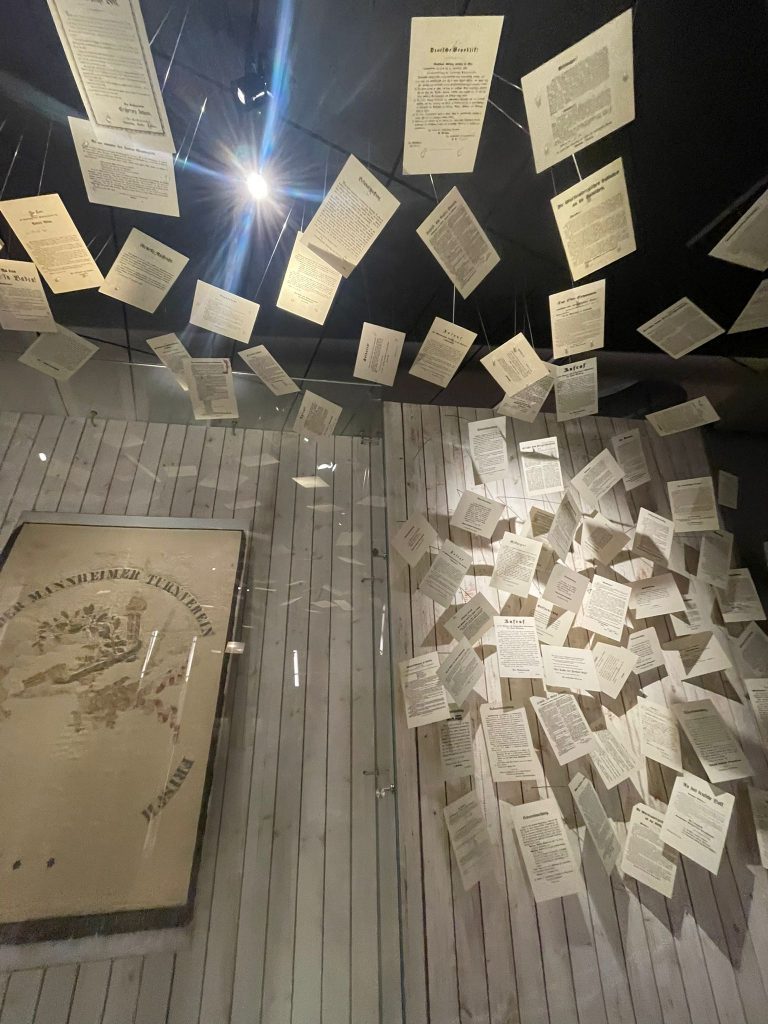 Nach einer kurzen Pause ging es weiter ins Haus der Geschichte, wo die aktuelle Ausstellung „Wahlkampf radikal“ auf dem Programm stand. Anhand eindrucksvoller Originalquellen, Flugblätter, Plakate und einer interaktiven Social-Media-Installation erfuhren die Schüler:innen, wie extreme Parteien wie KPD, NPD oder Republikaner in der Vergangenheit Wahlkämpfe in Baden-Württemberg beeinflussten – und wie demokratische Kräfte darauf reagierten: mit Protest, Abgrenzung, Argumenten oder – im Fall der KPD – einem Parteiverbot.