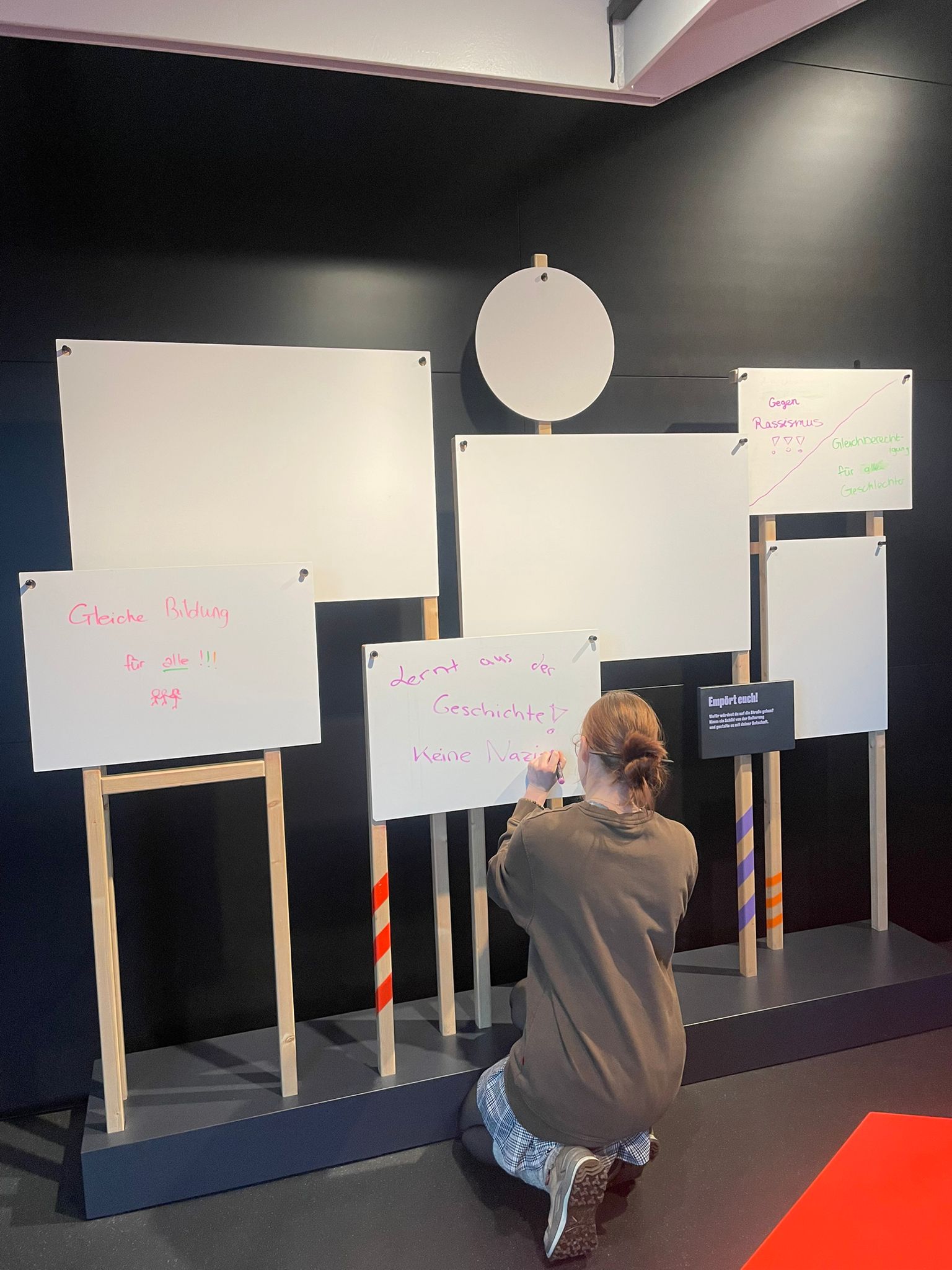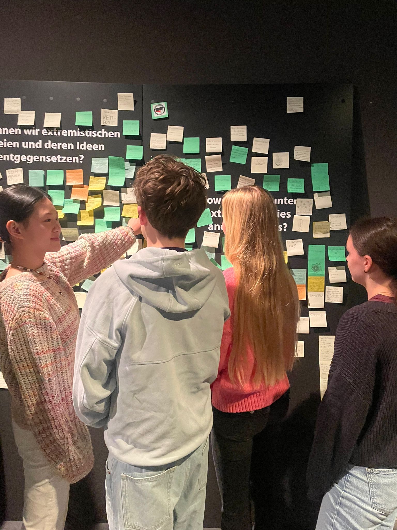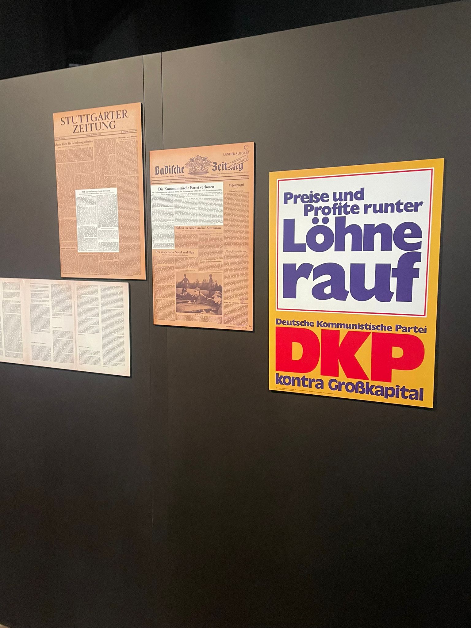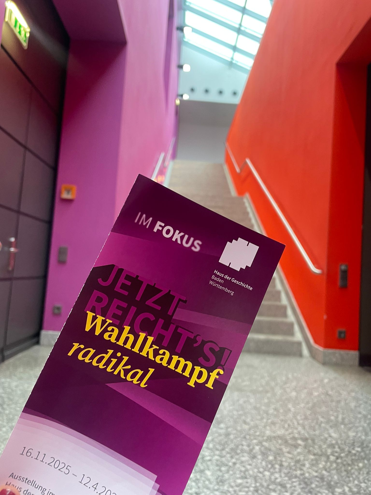 Nach einer kurzen Pause ging es weiter ins Haus der Geschichte, wo die aktuelle Ausstellung „Wahlkampf radikal“ auf dem Programm stand. Anhand eindrucksvoller Originalquellen, Flugblätter, Plakate und einer interaktiven Social-Media-Installation erfuhren die Schüler:innen, wie extreme Parteien wie KPD, NPD oder Republikaner in der Vergangenheit Wahlkämpfe in Baden-Württemberg beeinflussten – und wie demokratische Kräfte darauf reagierten: mit Protest, Abgrenzung, Argumenten oder – im Fall der KPD – einem Parteiverbot.
