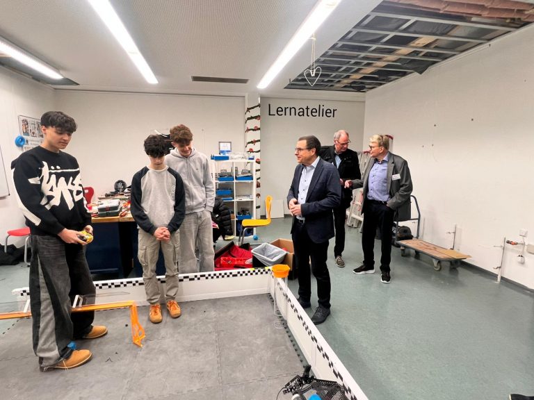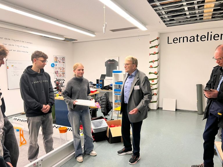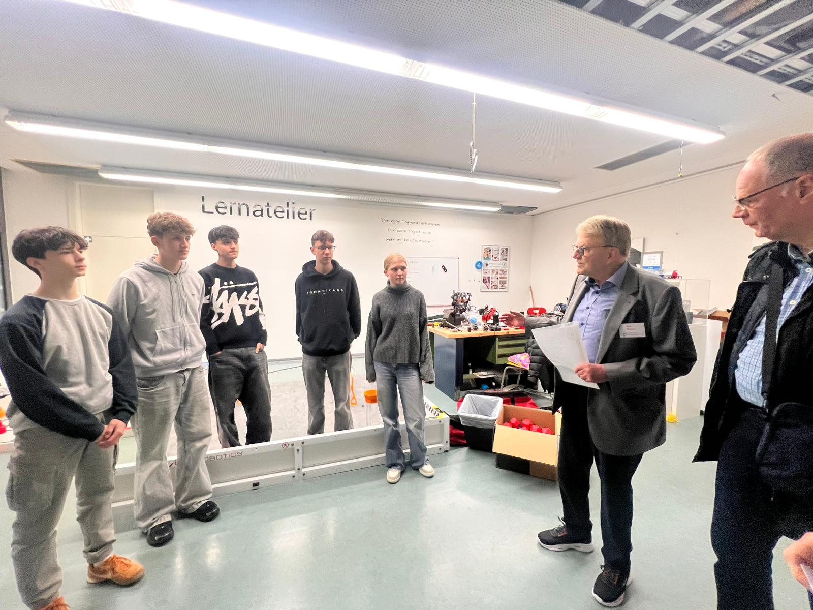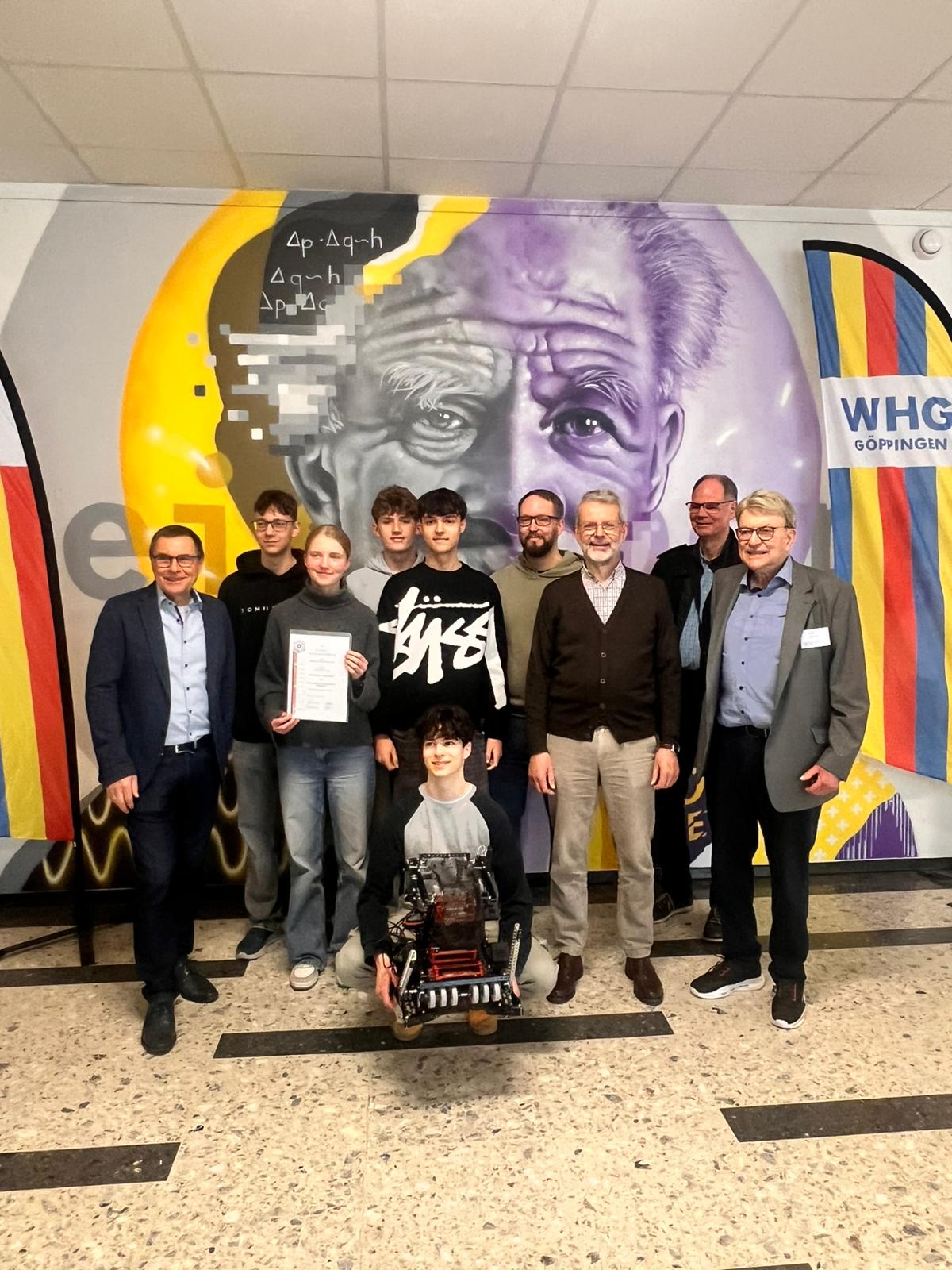 Im Rahmen der Preisverleihung war eine Delegation des Technikforums am WHG zu Gast. Vor Ort erhielten die Gäste Einblicke in die Arbeit des Teams, konnten den Roboter aus nächster Nähe erleben und sich mit den Schülerinnen und Schülern über Konstruktion, Programmierung und Wettbewerbserfahrungen austauschen. Das Technikforum, das sich seit 1997 für die Förderung technischer Talente in der Region engagiert, würdigte die Leistung des Teams als „Aushängeschild für den Technikstandort Göppingen und die Talentschmiede WHG“.